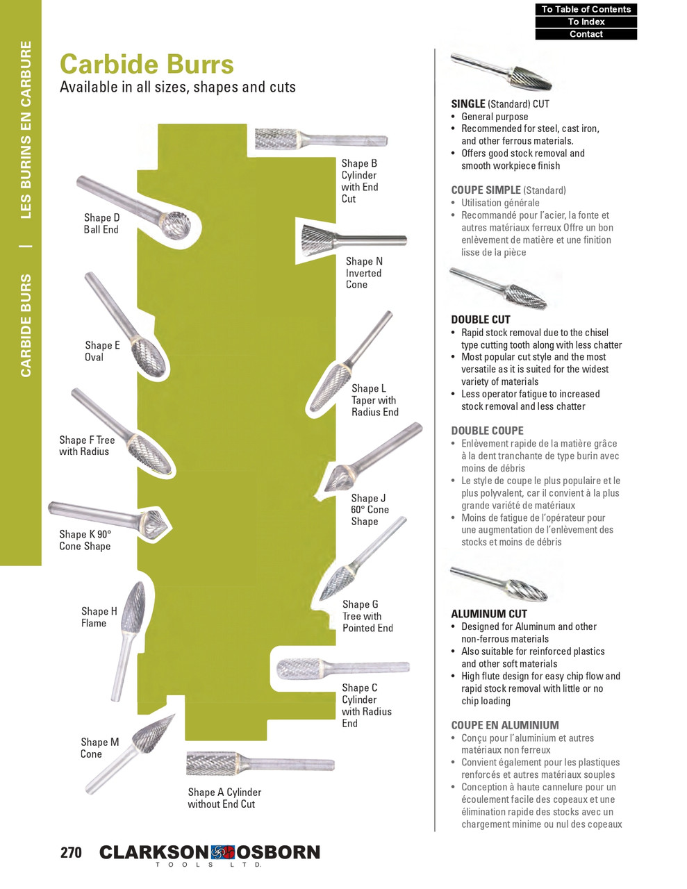 • Clarkson-Osborn carbide burs are offered in all of the popular SCTI styles