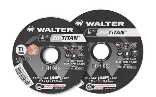 Walter | sku: WAL 11T092 Zip Wheel® 25 Pc. 9 x 5/64 x 7/8" A-30 Cut-Off Wheel 11T092 MSRP: Now: $415.49 Add to Cart Compare Walter | sku: WAL 11T072 Zip Wheel® 25 Pc. 7 x 1/16 x 7/8" A-30 Cut-Off Wheel 11T072 MSRP: Now: $306.29 Add to Cart Compare Walter | sku: WAL 11T062 Zip Wheel® 25 Pc. 6 x 3/64 x 7/8" A-60 Cut-Off Wheel 11T062 MSRP: Now: $241.22 Add to Cart Compare Walter | sku: WAL 11T052 Zip Wheel® 25 Pc. 5 x 3/64 x 7/8" A-60 Cut-Off Wheel 11T052 MSRP: Now: $179.86 Add to Cart Compare Walter | sku: WAL 11T042 Zip Wheel® 25 Pc. 4-1/2 x 3/64 x 7/8" A-60 Cut-Off Wheel 11T042 MSRP: Now: $163.61 Add to Cart Compare Walter | sku: WAL 11H072 Zip TiTAN® 25 Pc. 7 x 1/16 x 7/8" C-36 Cut-Off Wheel 11H072 MSRP: Now: $301.14 Add to Cart Compare Walter | sku: WAL 11H062 Zip TiTAN® 25 Pc. 6 x 3/64 x 7/8" C-36 Cut-Off Wheel 11H062 MSRP: Now: $235.63 Add to Cart Compare Walter | sku: WAL 11H052 Zip TiTAN® 25 Pc. 5 x 3/64 x 7/8" C-60 Cut-Off Wheel 11H052 MSRP: Now: $174.31 Add to Cart Compare Walter | sku: WAL 11H042 Zip TiTAN® 25 Pc. 4-1/2 x 3/64 x 7/8" C-60 Cut-Off Wheel 11H042 MSRP: Now: $161.27 Add to Cart Compare Walter | sku: WAL 11X272 Zip XX® 7 x 1/16 x 7/8" CA-46 Cut-Off Wheel 11X272 MSRP: Now: $13.72 Add to Cart Compare Walter | sku: WAL 11X262 Zip XX® 6 x 1/16 x 7/8" CA-46 Cut-Off Wheel 11X262 MSRP: Now: $10.93 Add to Cart Compare Walter | sku: WAL 11X252 Zip XX® 5 x 1/16 x 7/8" CA-46 Cut-Off Wheel 11X252 MSRP: Now: $8.05 Add to Cart Compare Walter | sku: WAL 11T092 Zip Wheel® 25 Pc. 9 x 5/64 x 7/8" A-30 Cut-Off Wheel 11T092 Faster, cooler, freer cutting and heavily reinforced for added safety, ZIP WHEEL® provides premium performance while resisting twisting and bending. This allows for a true, straight cut every time. The end result is a wheel that improves worker safety... MSRP: Now: $415.49 Add to Cart Compare Walter | sku: WAL 11T072 Zip Wheel® 25 Pc. 7 x 1/16 x 7/8" A-30 Cut-Off Wheel 11T072 Faster, cooler, freer cutting and heavily reinforced for added safety, ZIP WHEEL® provides premium performance while resisting twisting and bending. This allows for a true, straight cut every time. The end result is a wheel that improves worker safety... MSRP: Now: $306.29 Add to Cart Compare Walter | sku: WAL 11T062 Zip Wheel® 25 Pc. 6 x 3/64 x 7/8" A-60 Cut-Off Wheel 11T062 Faster, cooler, freer cutting and heavily reinforced for added safety, ZIP WHEEL® provides premium performance while resisting twisting and bending. This allows for a true, straight cut every time. The end result is a wheel that improves worker safety... MSRP: Now: $241.22 Add to Cart Compare Walter | sku: WAL 11T052 Zip Wheel® 25 Pc. 5 x 3/64 x 7/8" A-60 Cut-Off Wheel 11T052 Faster, cooler, freer cutting and heavily reinforced for added safety, ZIP WHEEL® provides premium performance while resisting twisting and bending. This allows for a true, straight cut every time. The end result is a wheel that improves worker safety... MSRP: Now: $179.86 Add to Cart Compare Walter | sku: WAL 11T042 Zip Wheel® 25 Pc. 4-1/2 x 3/64 x 7/8" A-60 Cut-Off Wheel 11T042 Faster, cooler, freer cutting and heavily reinforced for added safety, ZIP WHEEL® provides premium performance while resisting twisting and bending. This allows for a true, straight cut every time. The end result is a wheel that improves worker safety... MSRP: Now: $163.61 Add to Cart Compare Walter | sku: WAL 11H072 Zip TiTAN® 25 Pc. 7 x 1/16 x 7/8" C-36 Cut-Off Wheel 11H072 For the best solution when working with titanium and brass materials, trust ZIP TiTAN®. It cuts through titanium and brass without overheating these metals, delivering a longer lasting cut-off wheel while preserving the mechanical properties and surface... MSRP: Now: $301.14 Add to Cart Compare Walter | sku: WAL 11H062 Zip TiTAN® 25 Pc. 6 x 3/64 x 7/8" C-36 Cut-Off Wheel 11H062 For the best solution when working with titanium and brass materials, trust ZIP TiTAN®. It cuts through titanium and brass without overheating these metals, delivering a longer lasting cut-off wheel while preserving the mechanical properties and surface... MSRP: Now: $235.63 Add to Cart Compare Walter | sku: WAL 11H052 Zip TiTAN® 25 Pc. 5 x 3/64 x 7/8" C-60 Cut-Off Wheel 11H052 For the best solution when working with titanium and brass materials, trust ZIP TiTAN®. It cuts through titanium and brass without overheating these metals, delivering a longer lasting cut-off wheel while preserving the mechanical properties and surface... MSRP: Now: $174.31 Add to Cart Compare Walter | sku: WAL 11H042 Zip TiTAN® 25 Pc. 4-1/2 x 3/64 x 7/8" C-60 Cut-Off Wheel 11H042 For the best solution when working with titanium and brass materials, trust ZIP TiTAN®. It cuts through titanium and brass without overheating these metals, delivering a longer lasting cut-off wheel while preserving the mechanical properties and surface... MSRP: Now: $161.27 Add to Cart Compare Walter | sku: WAL 11X272 Zip XX® 7 x 1/16 x 7/8" CA-46 Cut-Off Wheel 11X272 Achieve the ultimate gain in productivity and comfort with the new ZIP XX cut-off wheel. Made with a unique ceramic grain and Walter's new SMART RESIN® technology, it provides the most cuts without compromising on speed & safety. Not only does it cut... MSRP: Now: $13.72 Add to Cart Compare Walter | sku: WAL 11X262 Zip XX® 6 x 1/16 x 7/8" CA-46 Cut-Off Wheel 11X262 Achieve the ultimate gain in productivity and comfort with the new ZIP XX cut-off wheel. Made with a unique ceramic grain and Walter's new SMART RESIN® technology, it provides the most cuts without compromising on speed & safety. Not only does it cut... MSRP: Now: $10.93 Add to Cart Compare Walter | sku: WAL 11X252 Zip XX® 5 x 1/16 x 7/8" CA-46 Cut-Off Wheel 11X252 Achieve the ultimate gain in productivity and comfort with the new ZIP XX cut-off wheel. Made with a unique ceramic grain and Walter's new SMART RESIN® technology, it provides the most cuts without compromising on speed & safety. Not only does it cut... MSRP: 