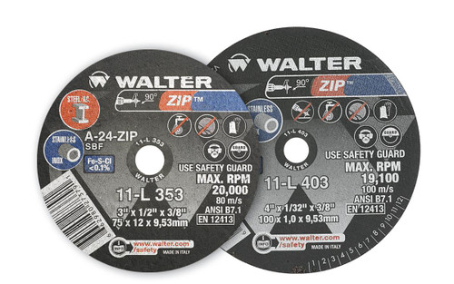 Walter | sku: WAL 11L202 ZIP® 25 Pc. 2 x 1/32 x 1/4" A-24 Cut-Off Wheel 11L202 ZIP® wheels offer the best performance available on straight shaft and die grinders. These are specially formulated to run cool for maximum life and are guaranteed not to contaminate stainless steel. For notching applications, it is recommended that you... MSRP: Now: $150.57 Add to Cart Compare Jet Tools | sku: JET 501054 2 x 1/8 x 3/8" A36 POWERPLUS II T1 Cut-Off Wheel 501054 High performance cutting of all steel materials, outstanding cutting speed and long wheel life Made in the U.S.A. to Jet's strict specifications and is our most popular series of small diameter wheels These small diameter cut-off wheels are used on all... MSRP: Now: $2.12 Add to Cart Compare 1 2 Next 1 2 Next Compare Selected