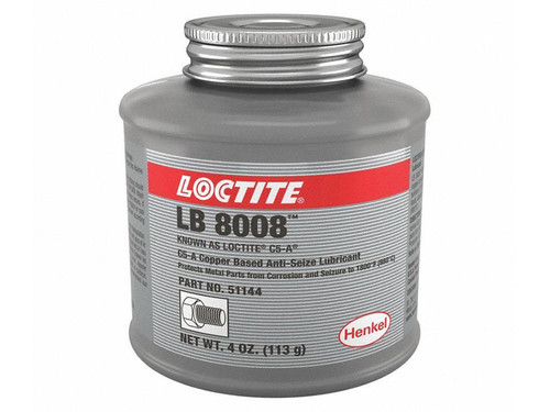Henkel-Loctite | sku: LOC 544370 LB 8008 Copper-Based Anti-Seize Lubricant 1lb. Can 544370 Loctite® LB 8008 C5-A is an exclusive anti-seize lubricant in a brush top form with copper and graphite suspended in high quality grease Applications include screws, nuts, pipes, exhaust bolts and brake caliper bolts Resistant to very high temperatures... MSRP: Now: $39.19 Add to Cart Compare Henkel-Loctite | sku: LOC 1786073 LB 8007 Copper-Based Anti-Seize Lubricant 12oz. Aerosol 1786073 Loctite® LB 8007 is an anti-seize lubricant paste with copper and graphite particulate suspended in high quality grease Typical applications include screws, nuts, pipes, exhaust bolts and brake calliper bolts Resistant to extremely high temperatures up... MSRP: Now: $44.62 Add to Cart Compare Compare Selected